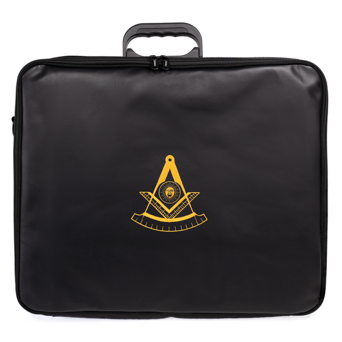 Past Master Apron Case – Black Faux Leather with Oxford Cloth Lining, Machine-Embroidered Symbolism, Elegant Protection & Functional Design
