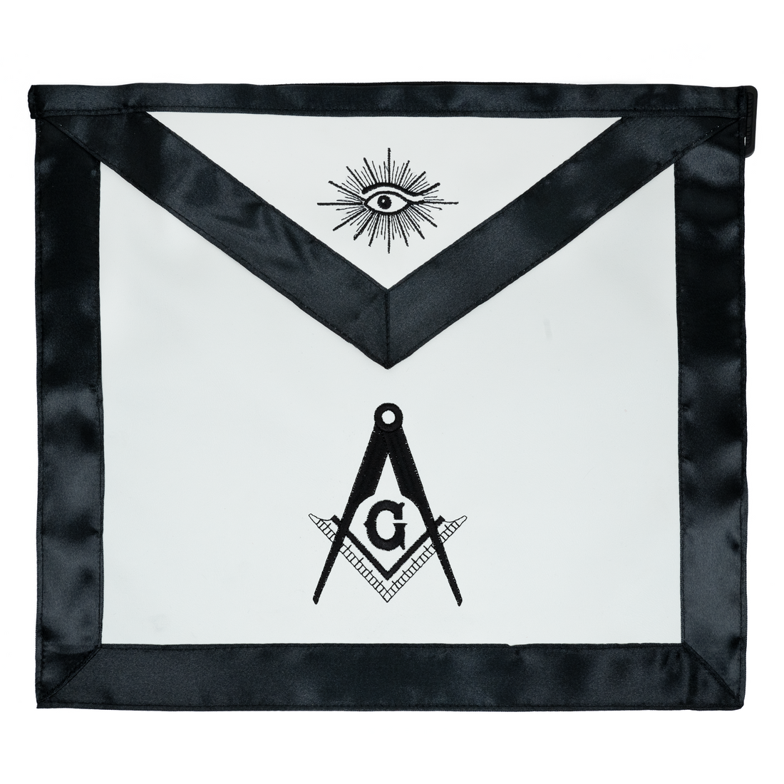 Masonic Funeral Apron with Embroidery – Genuine Lambskin, Black Ribbon Trim & All-Seeing Eye