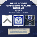 Blue Lodge Masonic Officers Standard Bundle — Royal Blue Aprons, Chain Collars & Silver Jewels (Set of 11)