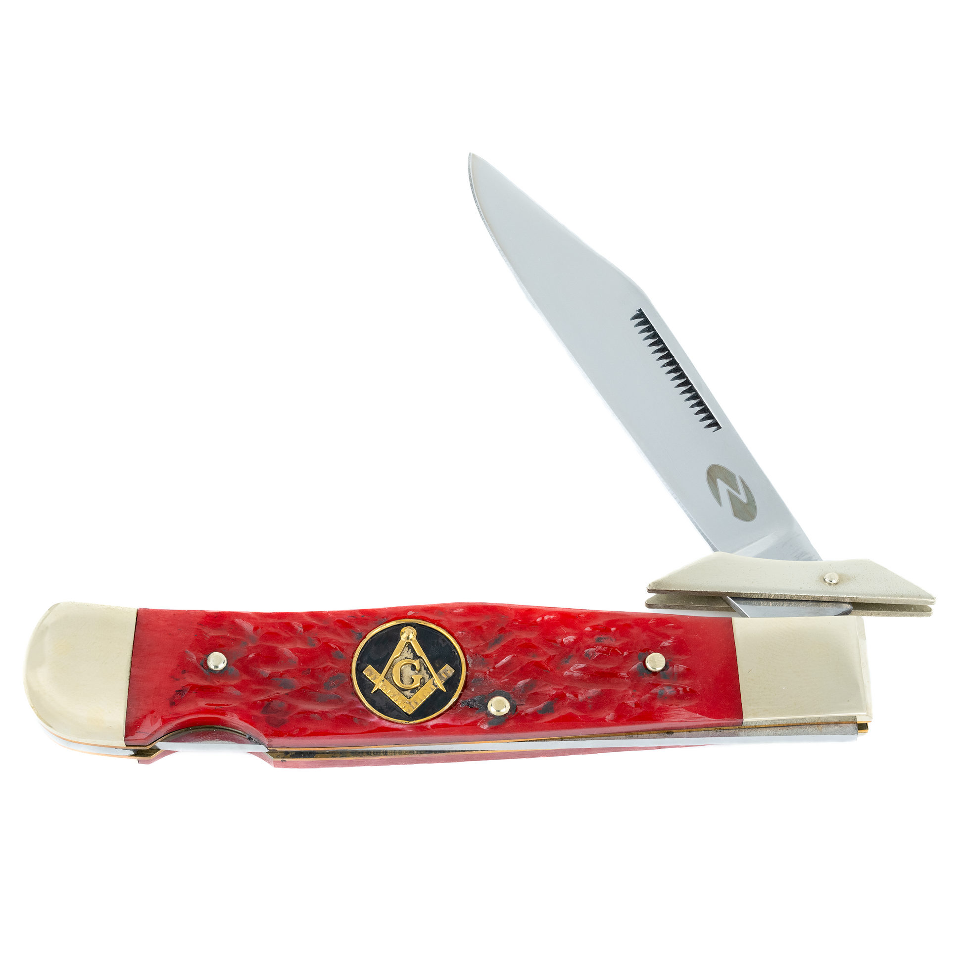The genuine jigged bone handle of this Cougar Claw knife features a striking red hue, combining both aesthetic appeal and functionality. The jigging process creates a textured surface, enhancing grip and providing a tactile experience during use. This unique pattern not only adds visual interest but also ensures a secure hold, making it ideal for precision tasks. The vibrant red color gives the knife a distinctive character, setting it apart and adding a touch of elegance to its overall design. This handle is not only beautiful but also crafted for durability, reflecting the quality and craftsmanship that defines this exceptional knife.
