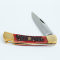 Handle Description: The genuine jigged bone handle of this Tiny Traveler knife features a striking red hue, combining both aesthetic appeal and functionality. The jigging process creates a textured surface, enhancing grip and providing a tactile experience during use. This unique pattern not only adds visual interest but also ensures a secure hold, making it ideal for precision tasks. The vibrant red color gives the knife a distinctive character, setting it apart and adding a touch of elegance to its overall design. This handle is not only beautiful but also crafted for durability, reflecting the quality and craftsmanship that defines this exceptional knife.