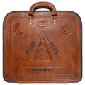 The Pyramidic Expression Brown Leather Apron Case is more than a storage accessory—it is a testament to the unwavering principles of Faith, Hope, and Charity. Designed for the discerning Mason, this masterfully hand-carved and hand-stitched case protects your apron while reflecting the profound teachings of Freemasonry. With a meticulous blend of genuine leather, hand-tooled engraving, and luxurious velvet lining, this apron case is a masterpiece of tradition and craftsmanship.